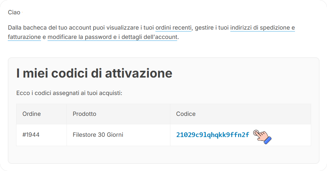 A volte le email finiscono in spam o si perdono nel traffico. Puoi recuperare il tuo codice di attivazione in qualsiasi momento: ti basta entrare nella sezione “Il mio Account” all’interno del tuo profilo