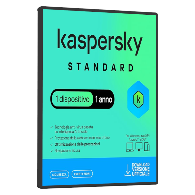 La soluzione cybersecurity pluripremiata a un prezzo conveniente con Kaspersky Standard 2026. Sicurezza avanzata con anti-phishing e firewall inclusi. Strumenti di gestione delle app e di pulizia per assicurare il funzionamento ottimale dei dispositivi. Protezione dei pagamenti online per una maggiore tranquillitร  durante gli acquisti online
